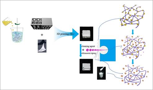图1 基于粘弹膏体的陶瓷立体光刻3D打印坯体清洗机制示意图