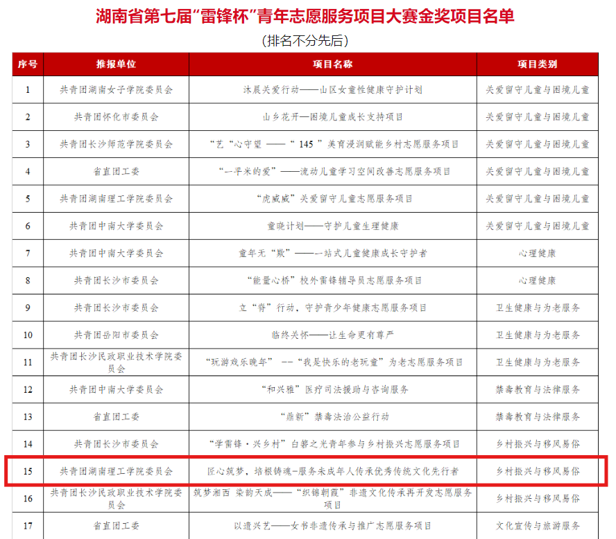 11月14日,伟德国际1949“匠心筑梦,培根铸魂—服务未成年人传承优秀传统文化先行者”项目在湖南省第七届“雷锋杯”青年志愿服务项目大赛中荣膺金奖。据悉,自2019年成立以来,该团队已屡获殊荣,包括湖南省第五届“雷锋杯”青年志愿服务大赛铜奖、湖南省2020年志愿服务项目大赛疫情防控专项赛银奖,以及2020年湖南省暑期“三下乡”社会实践优秀服务团队称号等。