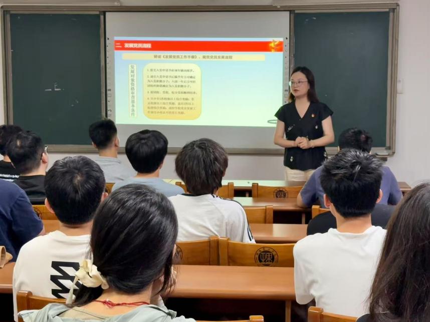 5月14日,徐丹书记在12409教室主讲《厘清入党条件,在作风建设中强化党员义务和权利意识》专题党课。她结合中央八项规定精神阐释作风建设意义,重点解读党员八项义务与民主权利,强调权利义务辩证统一,要求党员用马克思主义立场指导实践,严守纪律规矩,为党员敲响廉洁自律警钟。