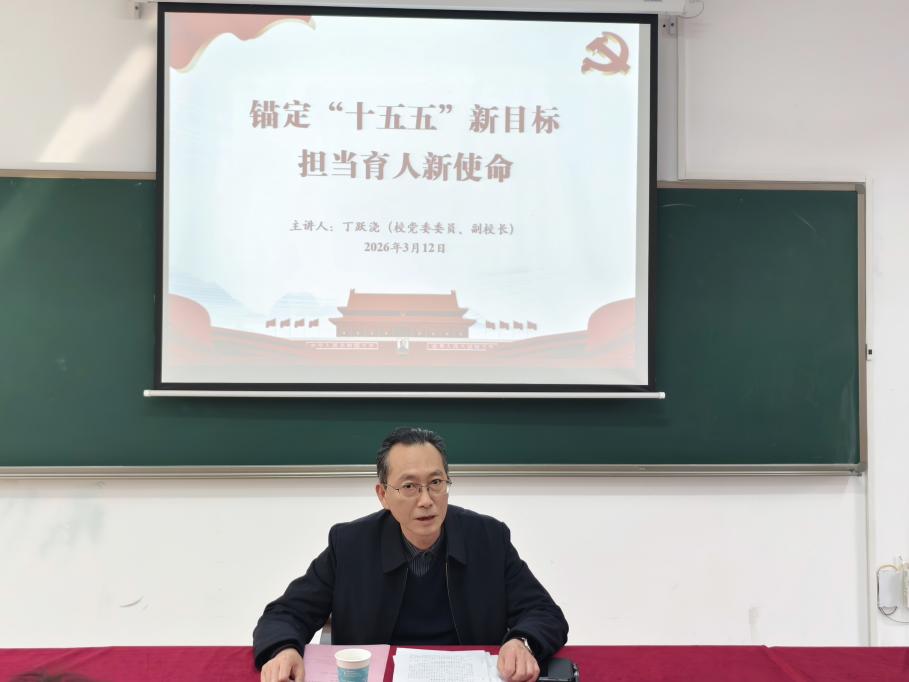 为深入学习贯彻党的二十届四中全会精神,全面落实“十五五”规划部署,推进“七进两联系”工作走深走实,3月12日下午,公司在16301B会议室举行专题党课。党课以“锚定‘十五五’新目标,担当育人新使命”为主题,由公司党委委员、副董事长丁跃浇主讲,公司党委书记徐丹主持,公司党委班子成员及部分师生党员代表参加。