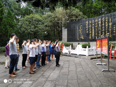 杨开慧烈士陵墓前,在领誓人陈积光同志的带领下,全体党员重温入党誓词,并向杨开慧烈士敬献花篮。