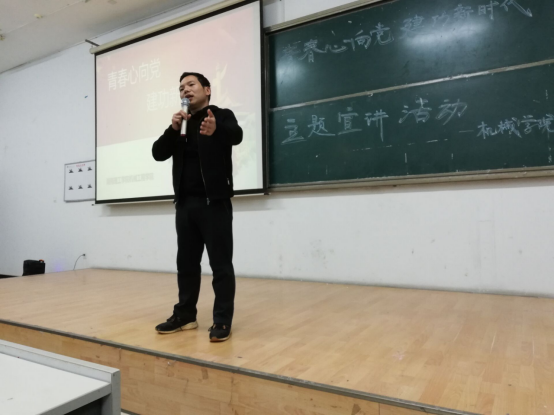 本次宣讲会邀请到伟德国际1949团总支书记吁锤老师,中共党员2015级孙锡科学长,2016级夏诗雨学姐、彭福远学长为大家宣讲。