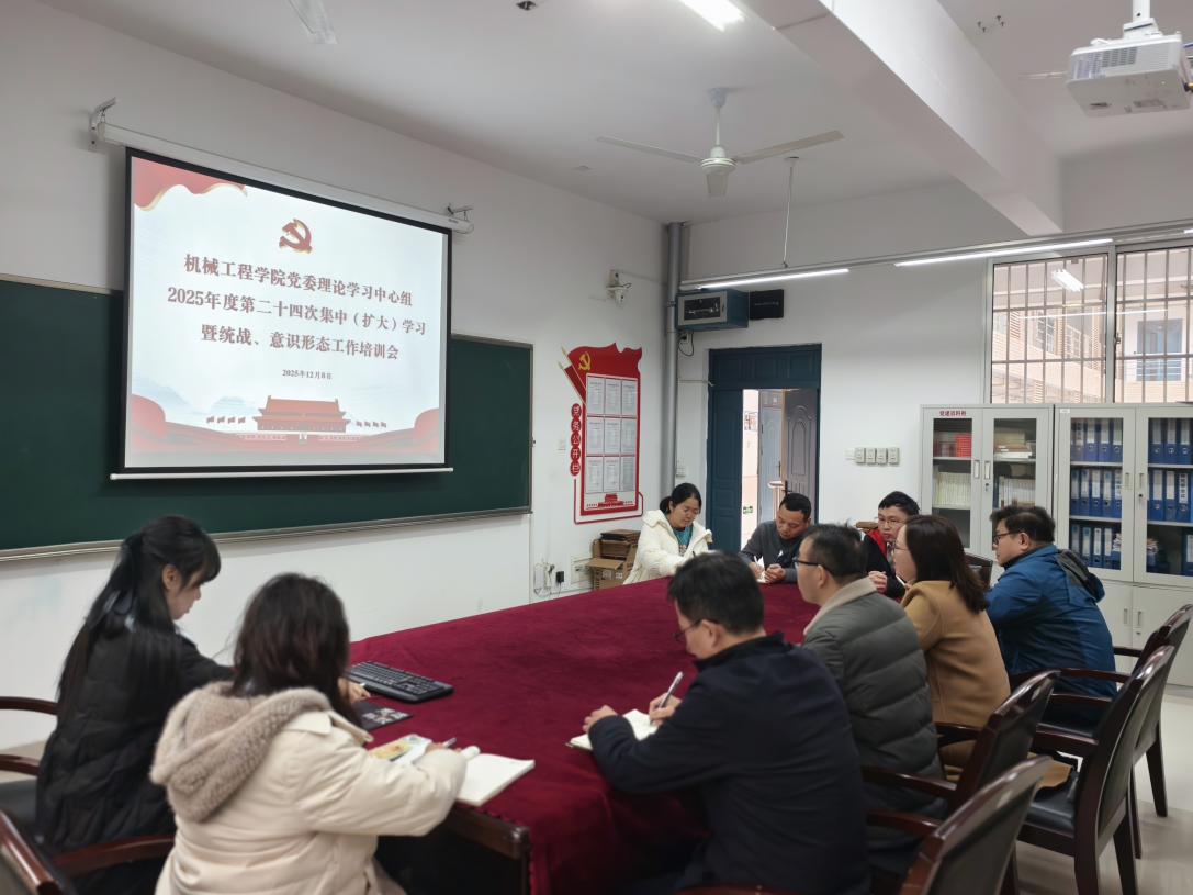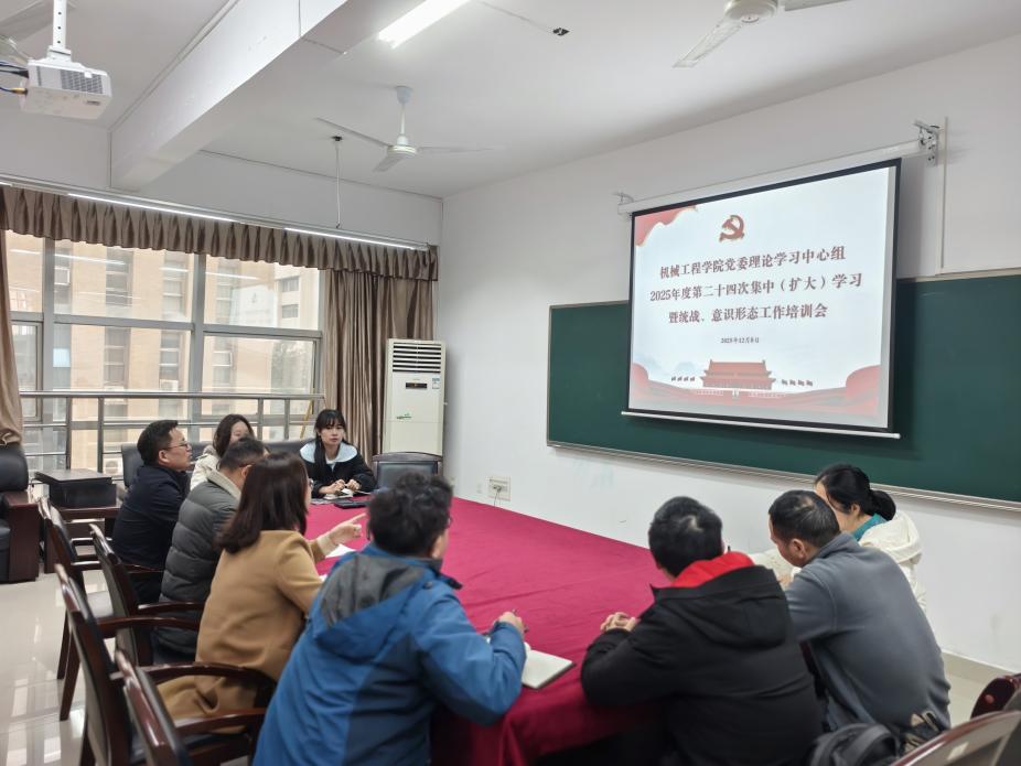 12月8日9:00,机械工程公司党委理论学习中心组在16301B会议室举行2025年度第二十四次集中(扩大)学习暨统战、意识形态工作培训会,会议由党委书记徐丹主持,全体中心组成员、辅导员参会。
