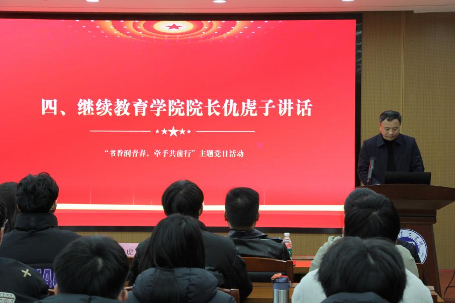 继续教育公司经理仇虎子进行讲话。他指出,此次“牵手”结对暨赠书仪式不仅是组织生活的创新,更是师生思想交融、薪火相传的生动实践。希望以此次活动为起点,进一步推动教育资源与工程实践资源深度融合,谋划开展更多形式丰富、内涵充实的共建活动,为培养担当民族复兴大任的时代新人贡献党建力量。