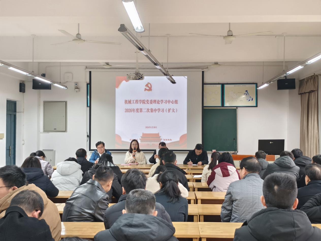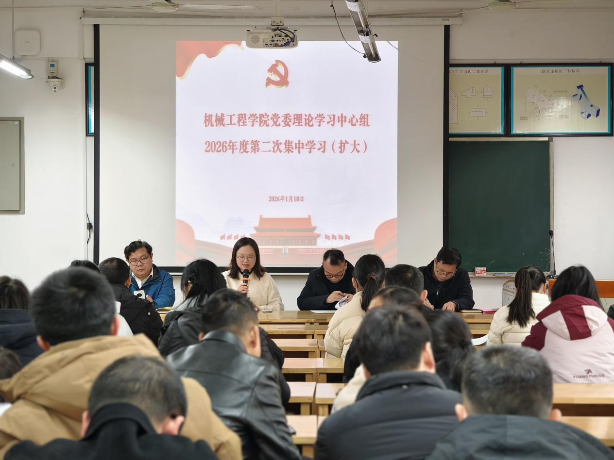 1月18日15:00,机械工程公司党委理论学习中心组在16310教室举行2026年度第二次集中(扩大)学习,公司全体教师参加,会议由党委书记徐丹主持。