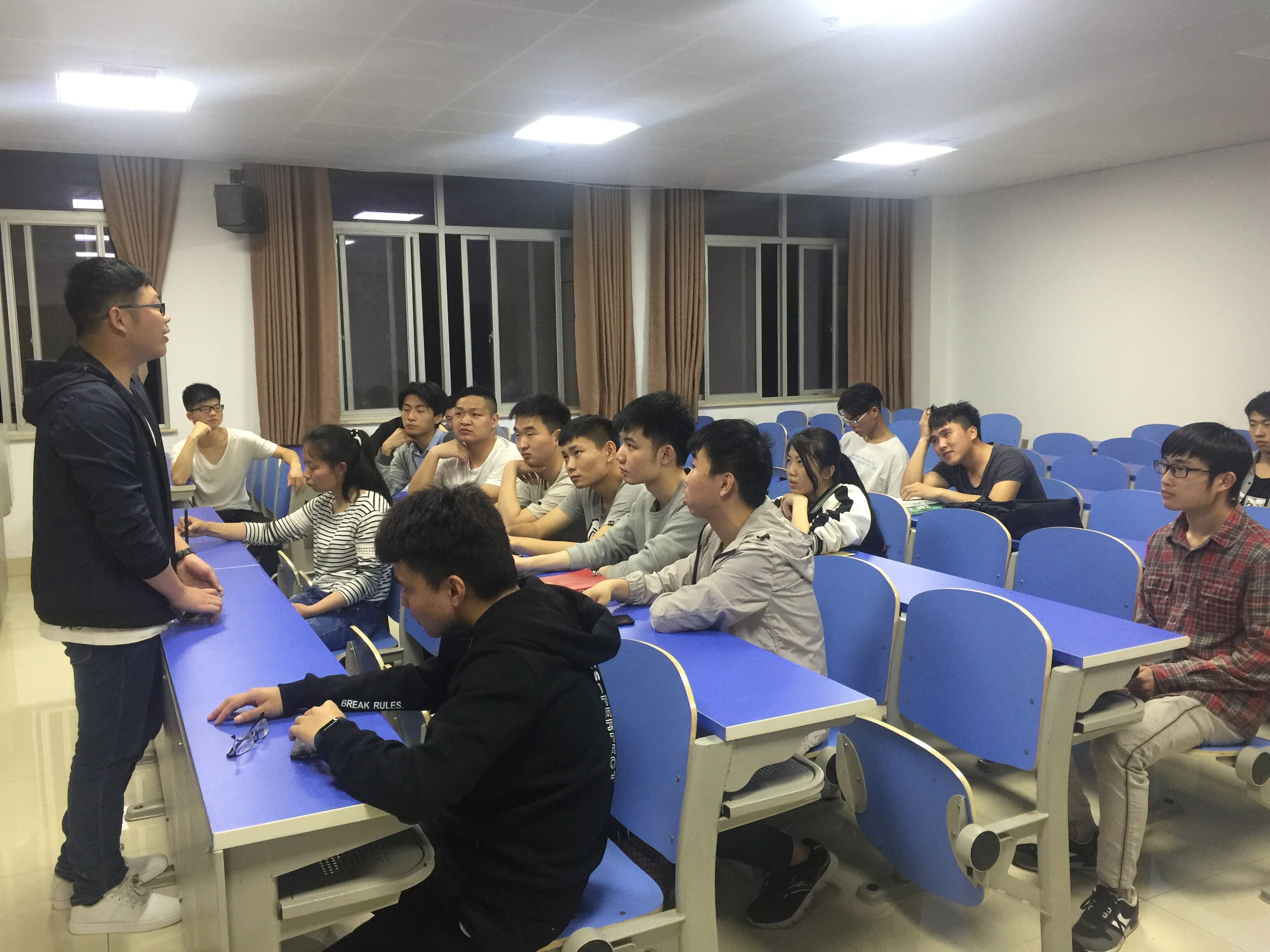 随后在同学们的提问下,几位学长说了关于考研复习步骤的几点建议。首先,在期末考试之前对英语和数学做知识点的全面复习,做到全书心中有数。在暑假可以学习相关的强化视频,并且大量做题;开学后可以开始做真题,保持每天一套或每两天一套的频率,同时开始专业课的复习。最后两个月做一些冲刺阶段难一些的题目,同时复习考研政治的内容。学长们还提出了很多注意事项,例如暑假前的复习不要有太大的强度,不要冲的太猛,有可能会导致后期乏力,坚持不下去等问题。复习前期要先把心静下来,把手机电脑游戏都戒掉,可以极大地提高学习效率,前期准备时不要想太多,目标公司有个基本目标就好,复试的问题先不要考虑。最重要的是要保证初试的分数,这是我们的核心竞争力所在,第一志愿也要量力而行,如果不能被第一志愿录取会很麻烦。另外尽量不要去做开荒者,有学长们带领的经验路会好走很多。同学们纷纷表示受益匪浅,相信他们的复习道路在学长的指导下会少走很多弯路,达到事半功倍的效果。