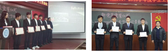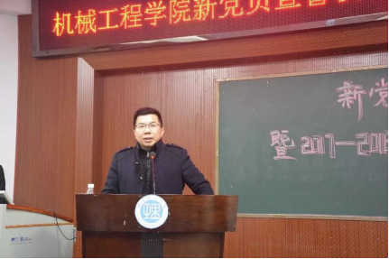 校团委书记薛静老师向大会致辞,彭福远等16位新党员在李紫薇老师的带领下在党旗面前庄严宣誓。预备党员代表张幸福为大家讲述他入党的心路历程。在伟德国际19492017-2018学年年度员工工作表彰与交流环节中,对机自17-2BF等优秀班级体,对孙锡科等四位党支部委员、陈峥嵘等10位员工会干部、张毅等59位班干部进行了表彰。优秀班级代表18级机电一班胡兴涛和优秀员工干部代表16级机电一班杨泉分别进行了班级工作总结和个人工作经验分享,其中胡兴涛的“今日我以湖理为荣,明日湖理以我为傲”引起了在场同学的共鸣。