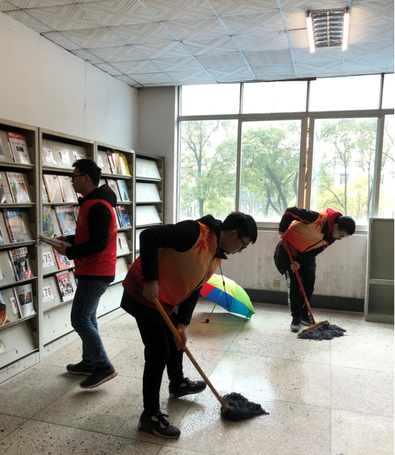 活动中,志愿者们热情饱满,从第一个书架开始,他们有的负责擦桌子,有的负责整理书籍,有的在阅览室拖地。清洁工作热火朝天进行的同时,我们的另一批志愿者对前来图书馆借阅的市民进行引导和咨询,此次活动开展的有条不紊。