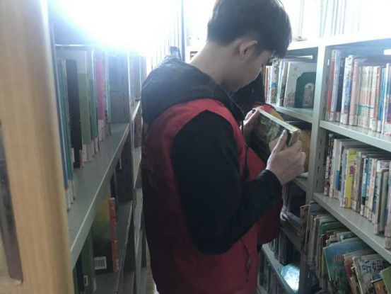 我们志愿者们在图书管理员的带领下来到了此次活动的任务点。来到图书馆四楼,面对繁多、厚重的书籍,他们精神抖擞、充满干劲,在认真听取管理员的引导和注意事项后一句话就认真的投入到工作中。不过今天他们有一项特殊的任务,就是带着小志愿者们工作。
