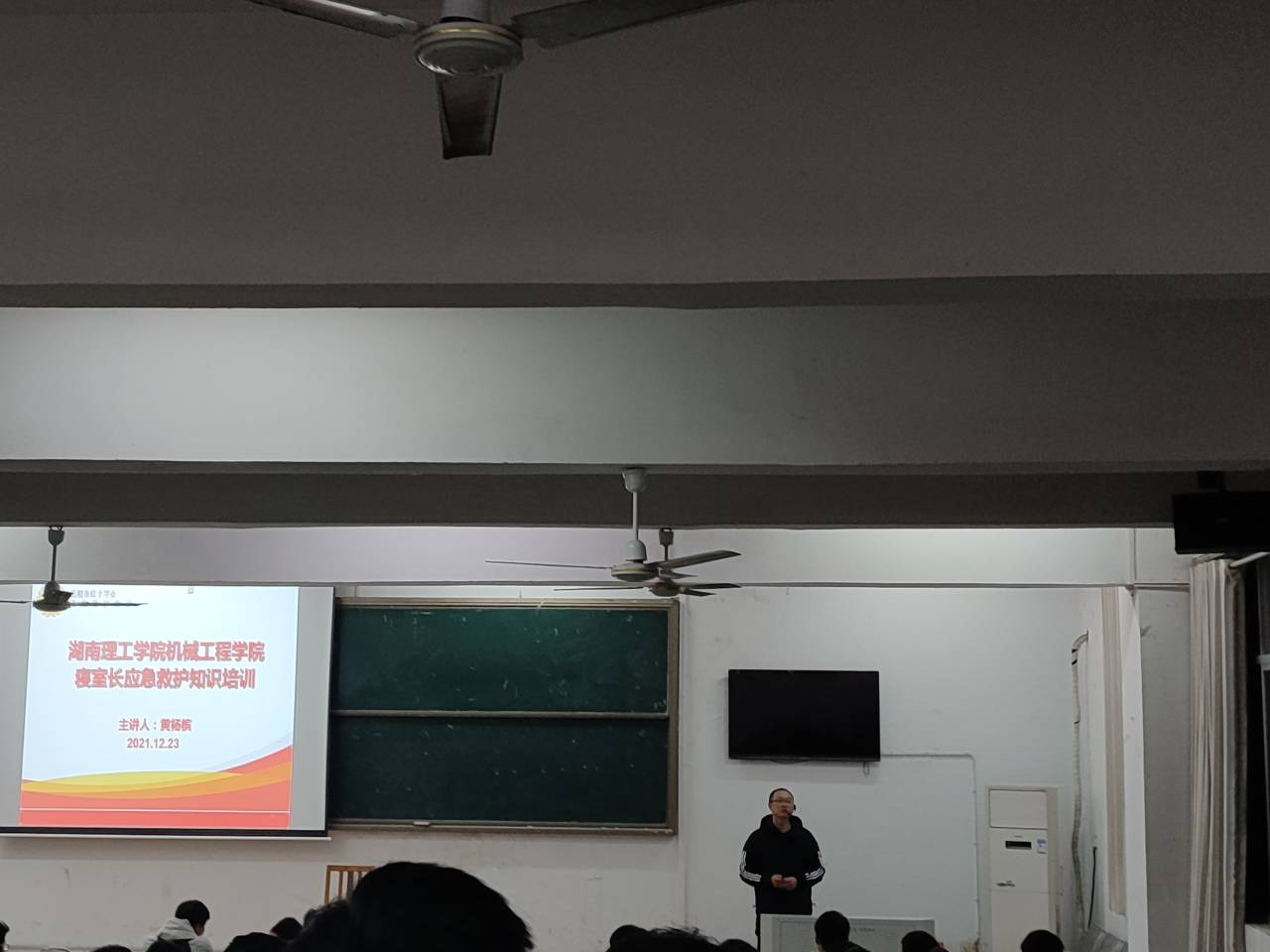 为深入推进平安校园建设,普及应急救护知识与技能,增强老员工安全避险意识,打造安全、安心的寝室环境,12月23日晚上19:00,伟德国际1949在9T1教室开展了寝室长应急救护知识培训会。本次培训会特邀继续教育公司黄杨槟老师主讲,会议由伟德国际194920级辅导员吁锤主持,19、20、21级全体寝室长参加。