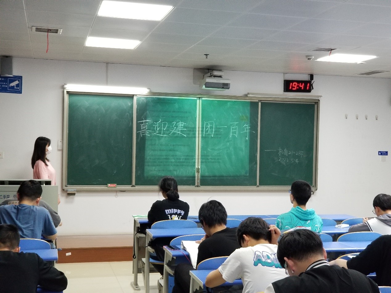节目开始之前,各班团支书首先带领班里同学认真学习共青团相关知识,了解共青团光辉历程。随后,晚8点组织同学们准时观看思政节目《为时代育新人》第一集《青春之歌》,观影过程中,同学们全神贯注,用心体会着革命青春的流光溢彩。观看结束后,同学们纷纷表示收获良多,并决心学习革命前辈为人民服务的担当和作为,加强自身的理论学习,积极投身社会建设,切实做到我将无我,不负韶华。