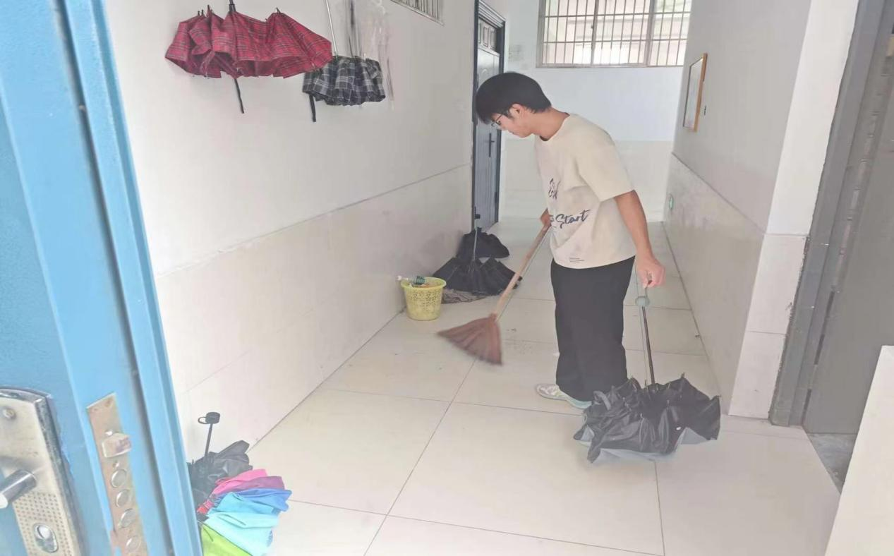 活动伊始,员工们拿起各自的劳动器具,在班委的有序组织下开始打扫卫生。在劳动过程中,同学们以班为单位,团结合作,分工明确,对每个区域做到了细致的打扫。经过同学们的认真打扫后,两栋教学楼和宿舍楼焕然一新。此次教育活动,大家深浸于劳动工作中,充分展现了同学们饱满的精神状态和劳动热忱。