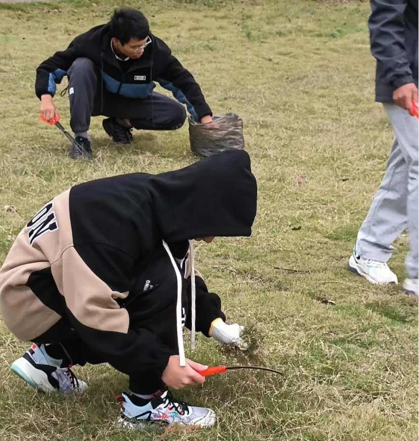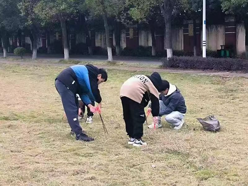 劳动教育实践课期间,同学们以班级为单位,在班委的组织下分发工具,全面细致地清理阳光大草坪上的垃圾,为美丽校园的建设贡献了力量。纵使寒风凛冽,也吹不灭同学们投身于劳动的热情,他们用实际行动发扬了吃苦耐劳、团结互助的劳动奉献精神。