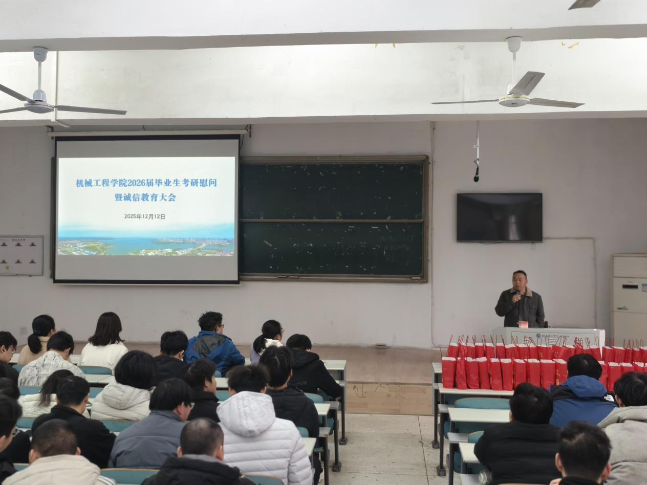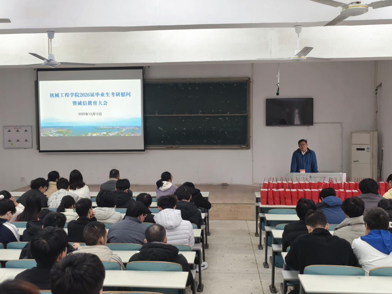 此次考研慰问暨诚信教育大会,既是一次考前动员的鼓劲会,也是一场诚信考风的教育会,更是一次公司与学子的暖心交流会。公司始终以学子成长为核心,全力搭建升学护航平台,厚植优良学风沃土。愿全体考研学子带着公司的关怀与祝福,秉持诚信之心、怀揣奋进之志,在考场上沉着应战、发挥所长,成功圆梦理想学府,在更广阔的天地间绽放机械学子的青春光彩!(责编/王荣荣 初审/谭晶莹 终审/徐丹)