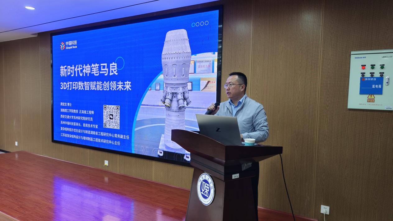 随后,周宏志聚焦增材制造领域,重点阐述材控专业与3D打印技术的深度关联,并强调3D打印作为前沿技术,正以数智化力量为材控领域注入新活力,引领行业未来发展方向,让新生直观感受到专业的科技价值与发展潜力。