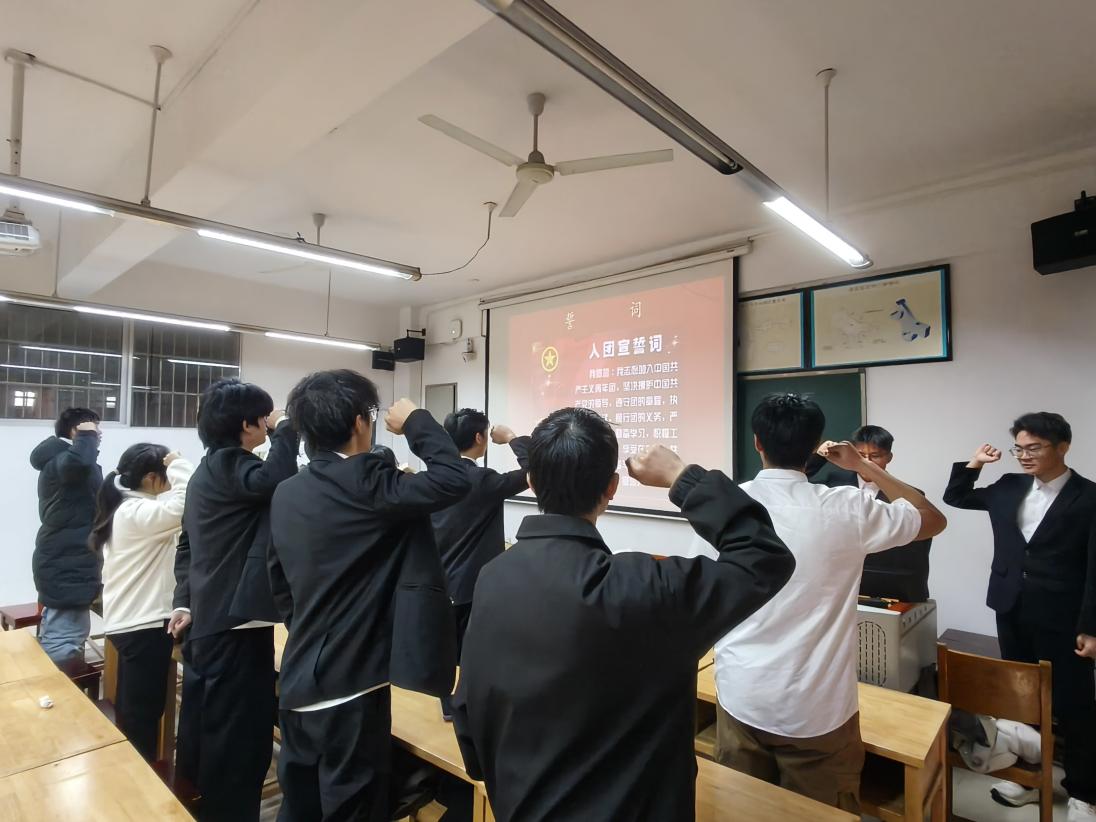在庄严的入团宣誓环节,公司团委分会干事何志能、姚庆带领全体新发展团员,面向熠熠生辉的中国共产主义青年团团旗,高举右拳,庄严宣誓。铿锵有力的誓言在教室中回荡,不仅是新团员对团组织的郑重承诺,更彰显了他们将个人专业理想融入国家装备制造业发展大局,为实现中华民族伟大复兴中国梦贡献机械力量的坚定信念。