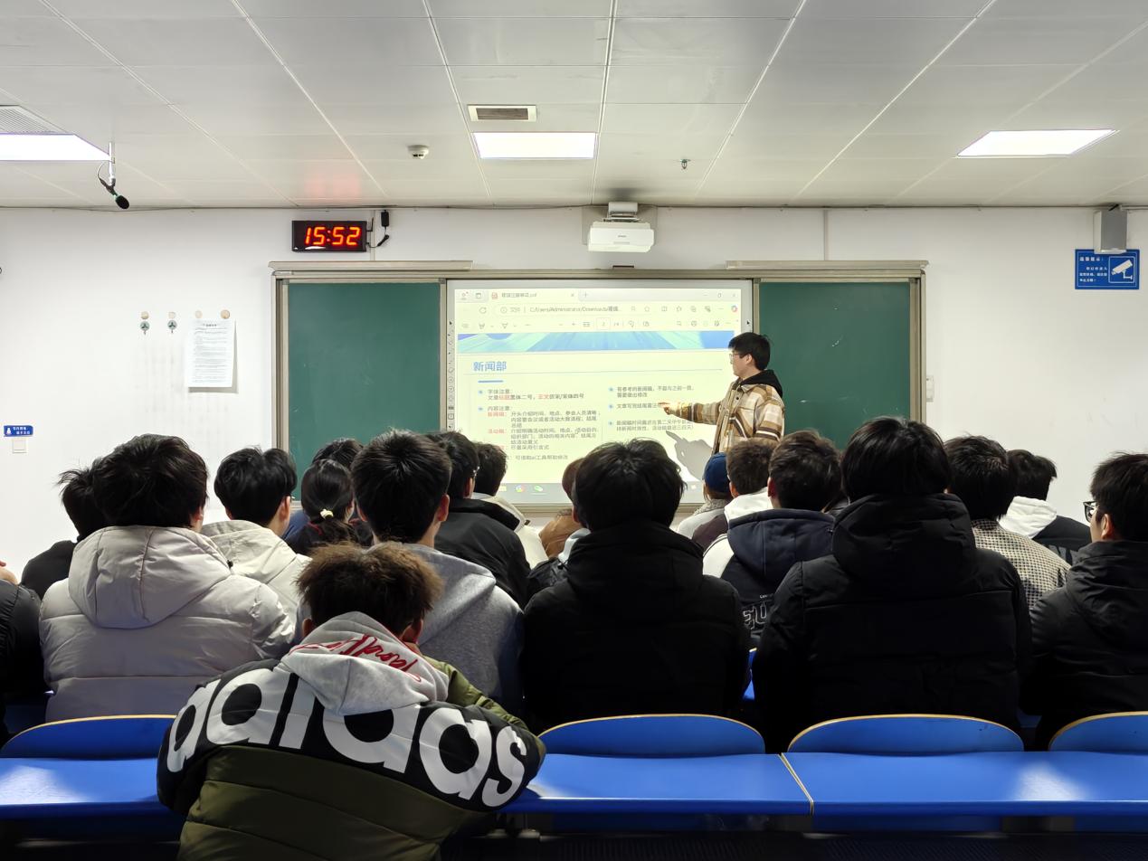 为进一步提升公司宣传队伍的专业素养,规范新闻宣传工作流程,增强校园宣传内容的传播力与影响力,3月10日15:00公司青年新媒体中心(以下简称青媒)在12108教室开展2026年春季学期新闻写作与摄影技能专题培训。本次培训由公司宣传专干王荣荣老师担任主讲,青媒主席汪俊杰主持,青媒全体成员参与。